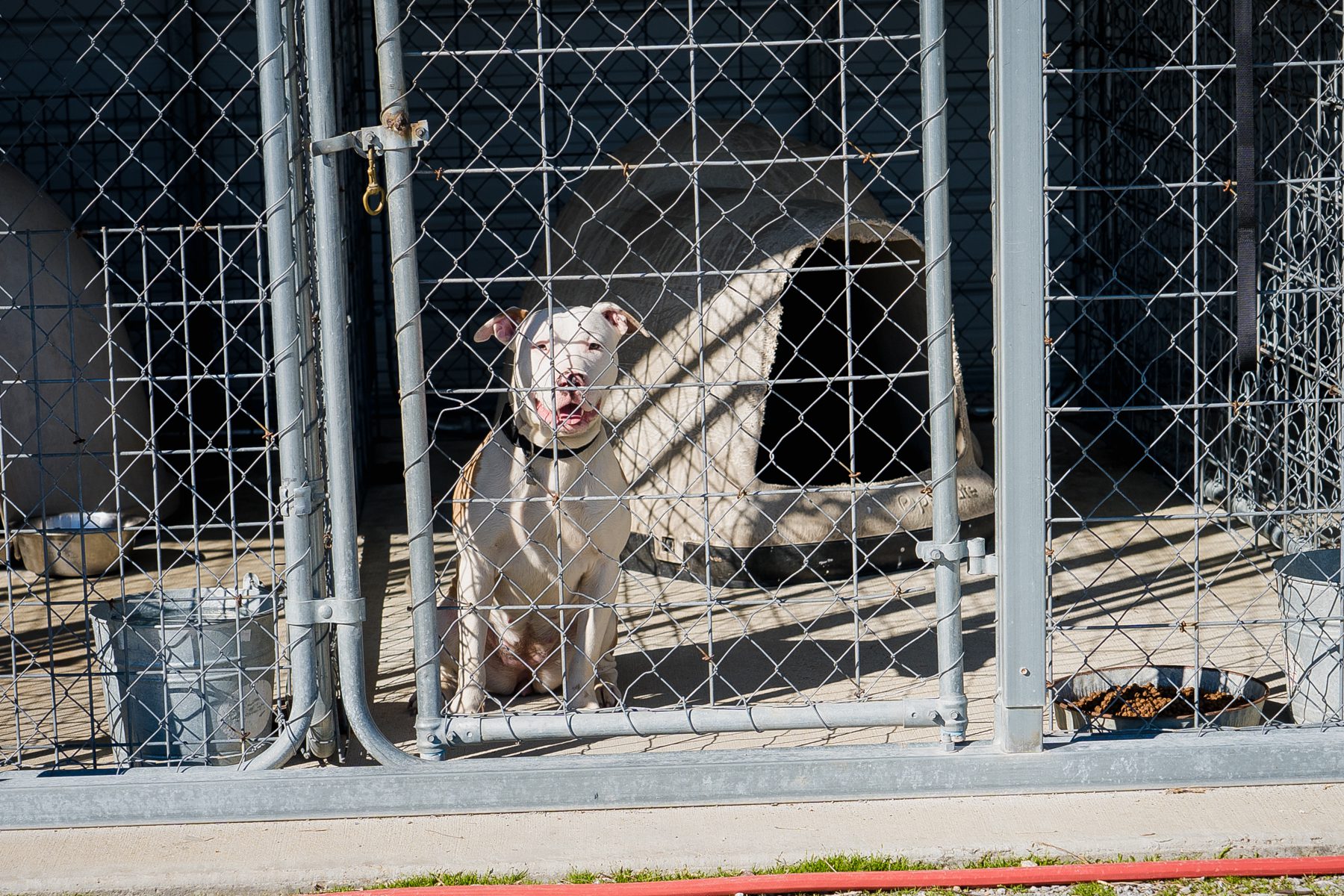 I stared at the set up. There was a trough running behind the back fence of the kennels. Toys could get caught on the fence when the kennels were sprayed out, but if you were inside the kennel to spray it out, it wouldn’t be difficult to pick up the toys. That’s when it dawned on me that the dogs really never left their enclosures, not even when it was being sprayed out with a high-pressure hose. (No wonder the frightened lab snapped at Mike.)