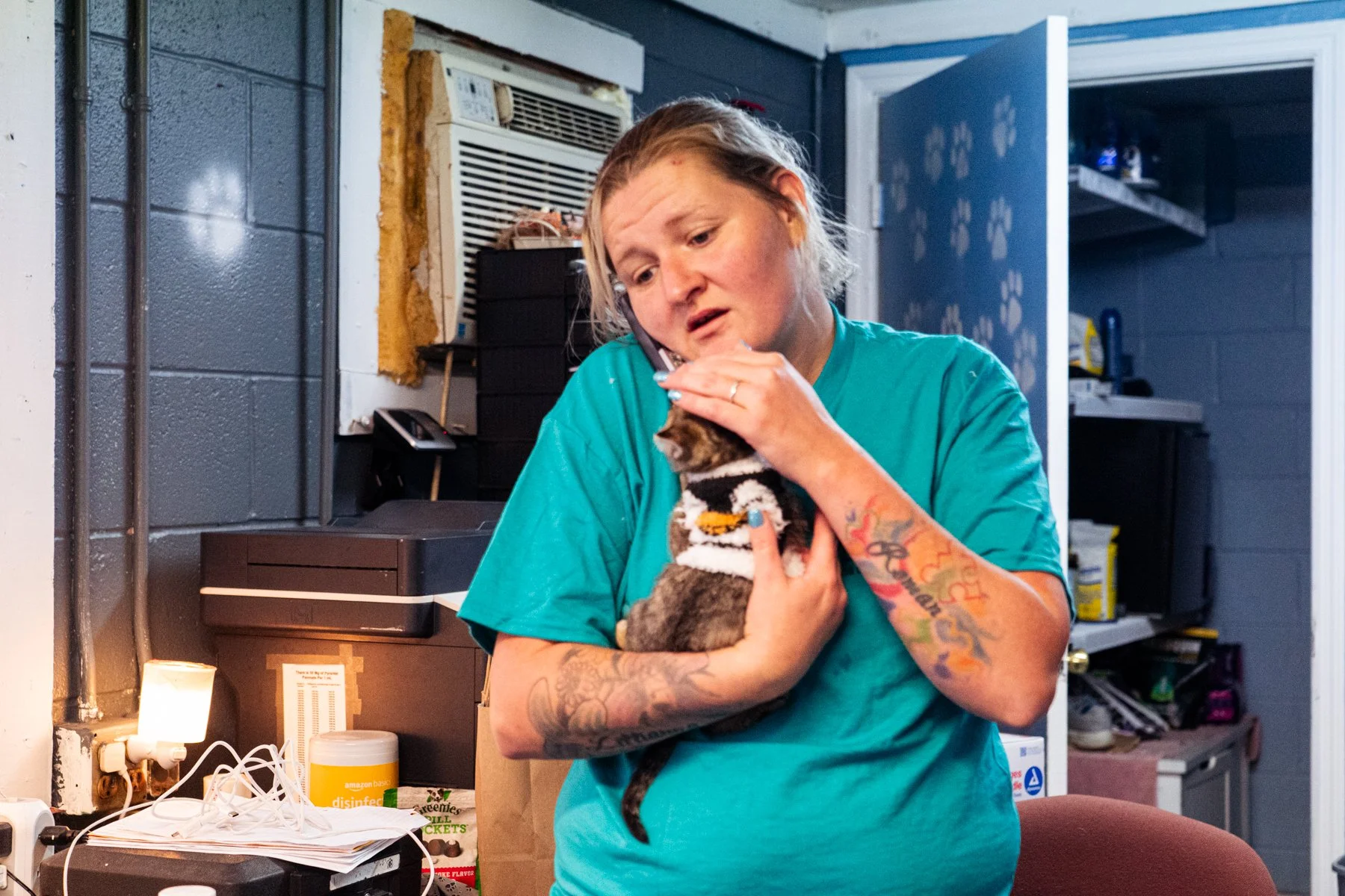 At the time of our visit in fall 2025, there were two full-time employees, Brittney and Loretta, plus Jamie, who works part-time. Brittney has worked at the shelter on and off since 2016, returned full-time this past July, and took over as director in September 2025. Loretta has been at the shelter for about a year.