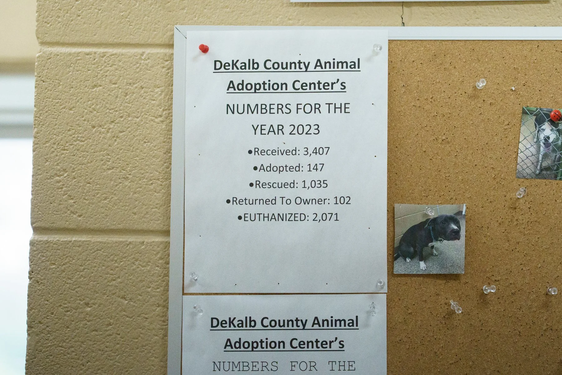 The 50% live release rate has held pretty steady over the years, even as the animal numbers have crept up. Though it is hard to hear, the shelter’s willingness to be transparent about the situation is admirable. The numbers for 2023 were posted in the lobby.