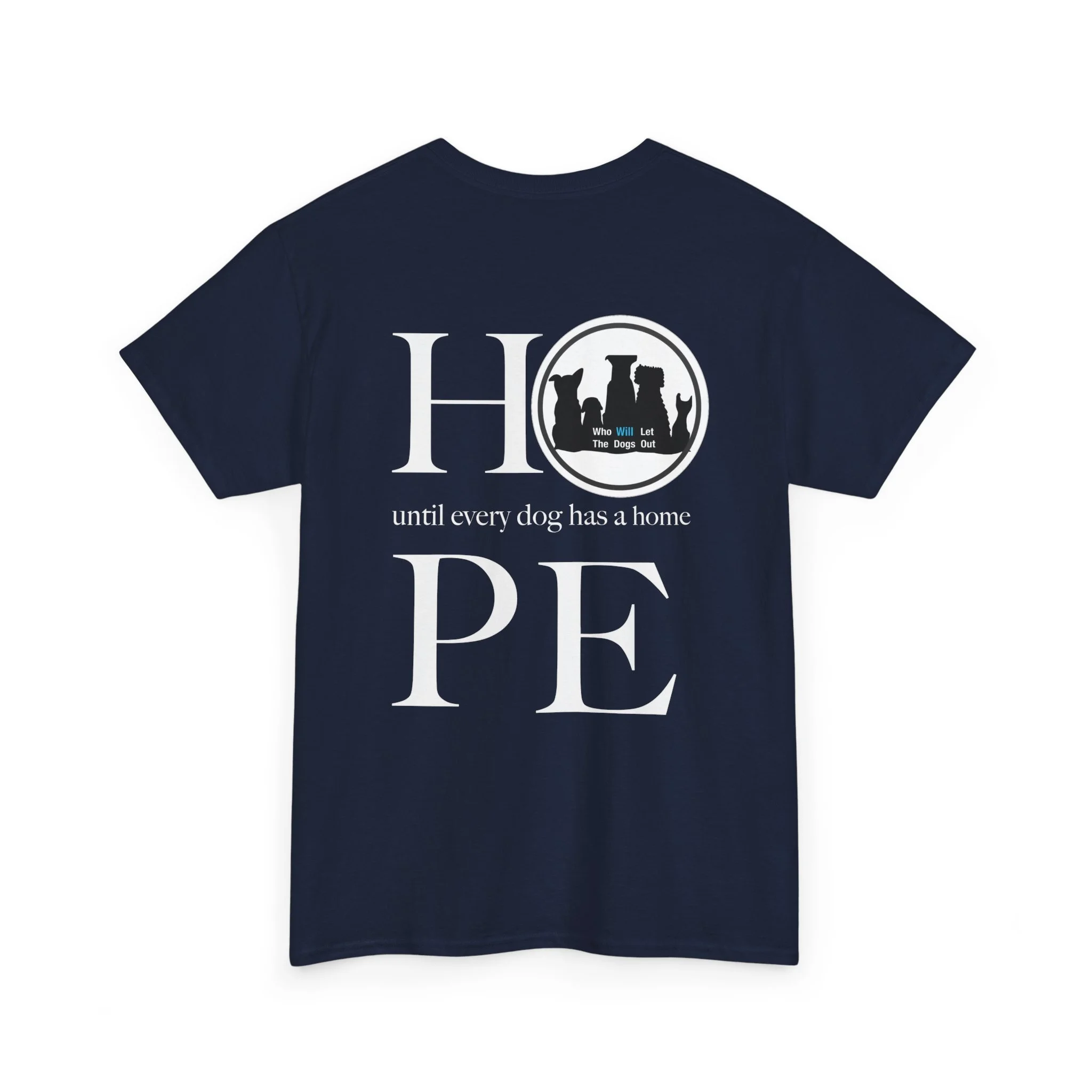 Heavyweight cotton t-Dog Rescue T‑Shirt — "Who Will Let The Dogs Out" Hope Shelter Tee