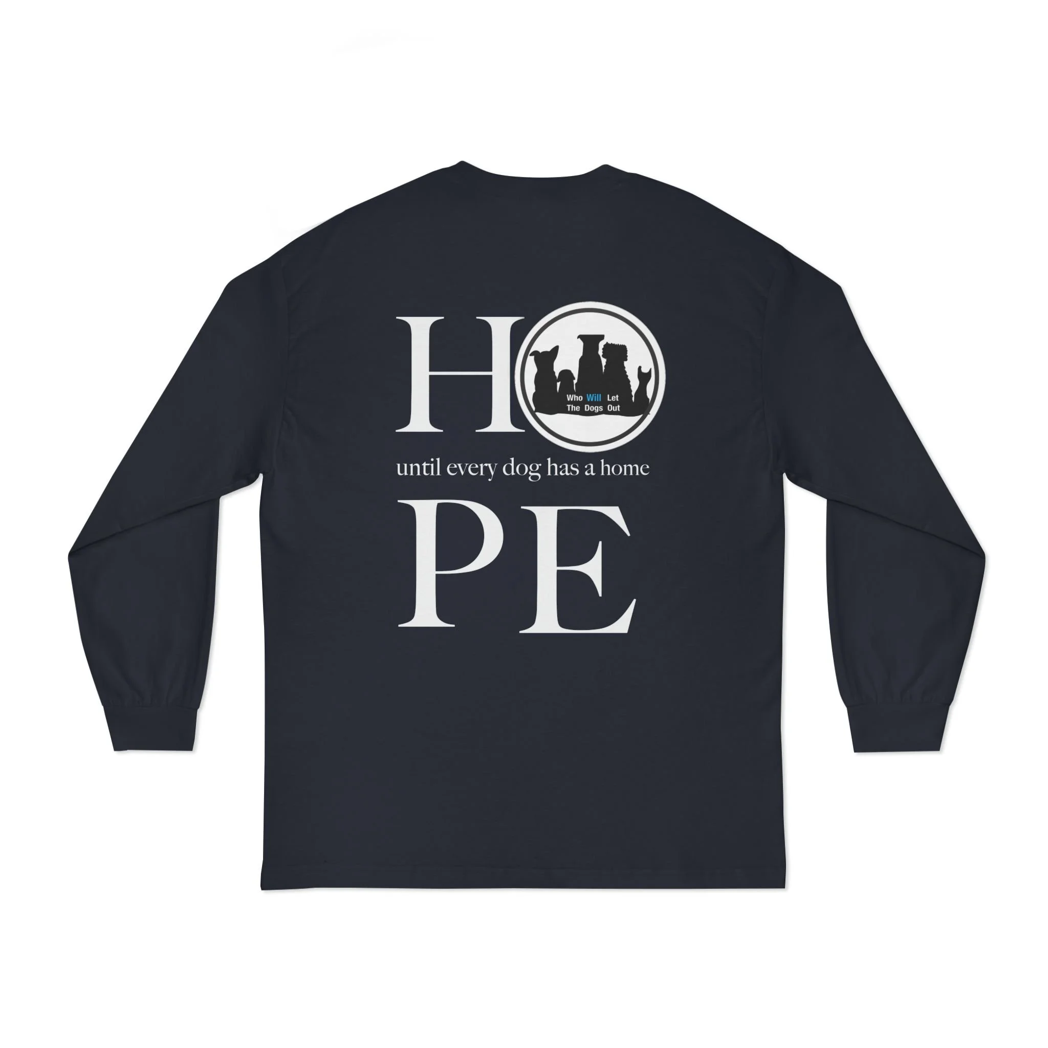 Shop › Hope shirt-long sleeved Image 1 of 8 Image 2 of 8 Image 3 of 8 Image 4 of 8 Image 5 of 8 Image 6 of 8 Image 7 of 8 Image 8 of 8 Hope shirt-long sleeved from $34.12 Our Hope message in a long sleeved t. Until every dog has a home! Logo and website on front chest. Color: Select Color Black Navy Size: Select Size S M L XL 2XL Add To Cart Added! Our Hope message in a long sleeved t. Until every dog has a home! Logo and website on front chest.